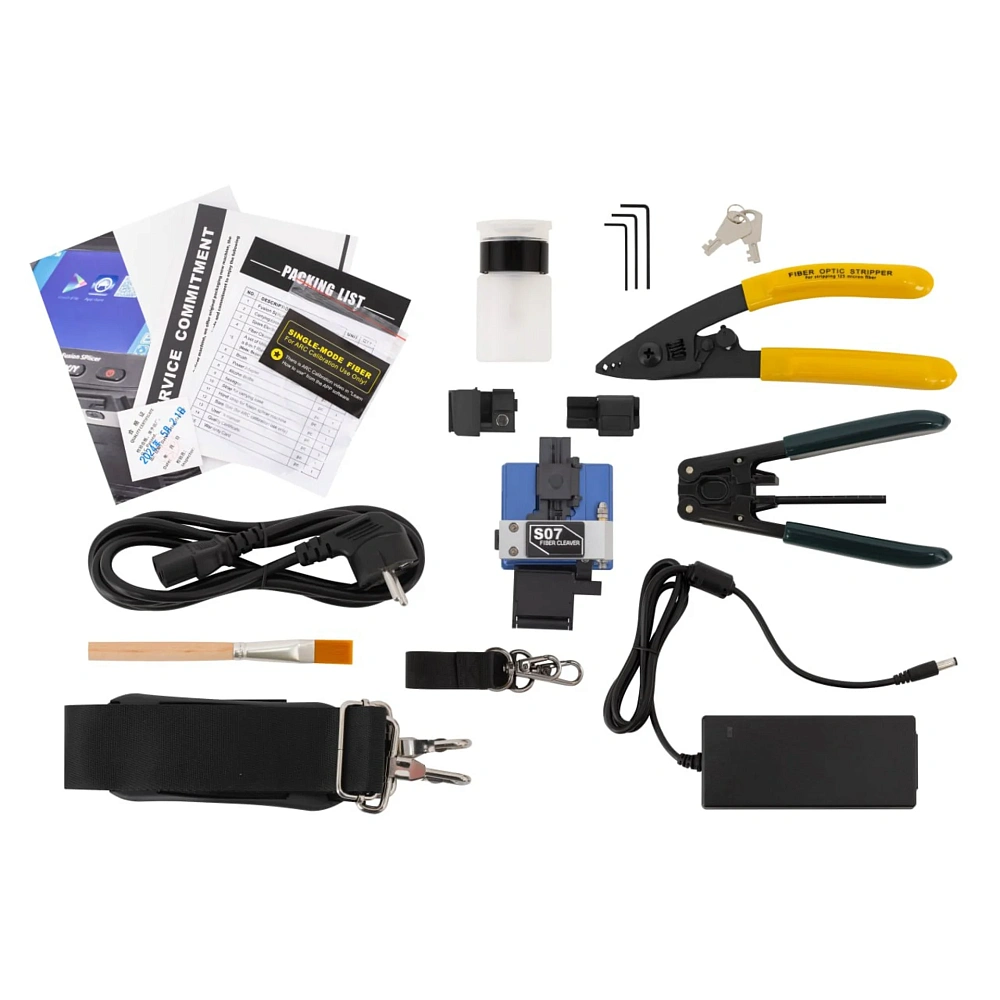 - Конструкция кареток и механизма юстировки позволяет производить сварку оптических волокон в буфере 250 мкм, 900 мкм, 2 и 3 мм, а так же с плоским FTTH-кабелем;