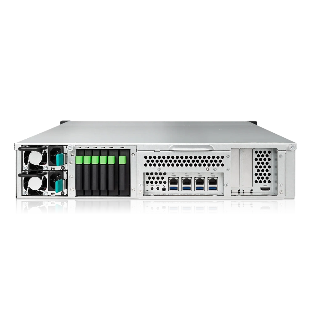 Благодаря инновационному дизайну аппаратной части XCubeNAS является гибридным устройством хранения данных. Кроме слотов под диски LFF, в XCubeNAS есть несколько слотов для SFF дисков SATA и PCIe SSD, которые расположены в задней части устройства. Такой дизайн удовлетворяет как требованиям высокой емкости, так и производительности.