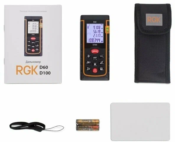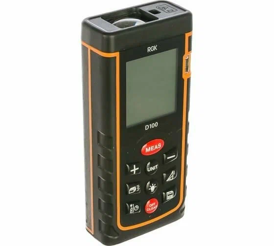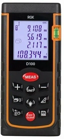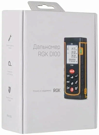 Дальномер RGK D100 оснащен мощным лазером, который позволяет измерять расстояния на удалении до 100 метров с двухмиллиметровой точностью, что позволяет работать не только в помещениях, но и на улице. Отличительной особенностью дальномера RGK D100 является наличие яркого лазерного маркера, облегчающего наведение на цель.