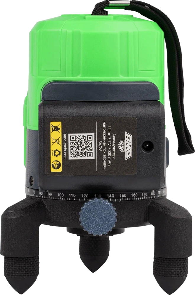 В конструкцию интегрирована подставка, которая позволяет гибко подстраивать положение лазерного нивелира АМО LN 2V при установке на неровной поверхности. Градуированный лимб и ручка тонкой регулировки помогают подстраивать положение вертикальных линий.