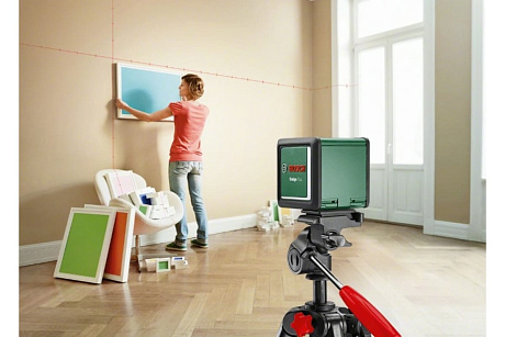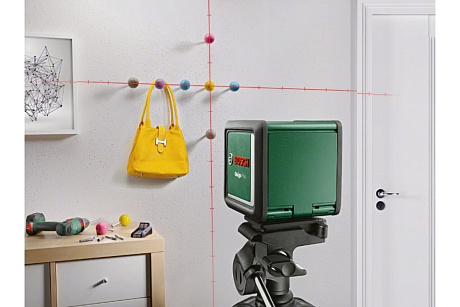 Размещая лазерный уровень Bosch Quigo Plus ближе или дальше от поверхности, на которую проецируются лучи, с соблюдением перпендикулярности положения излучателя, можно добиться требуемого масштаба расстояний между метками – для выполнения типовых разметочных операций без применения рулетки. Для оригинальных отделочных решений достаточно изменить угловое положение проецирующего прибора – и промежутки между метками на лазерных линиях будут пропорционально изменяться относительно друг друга.