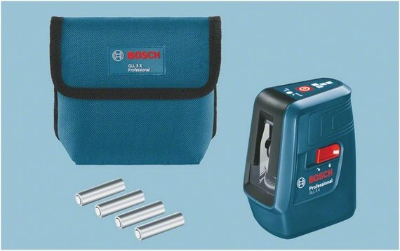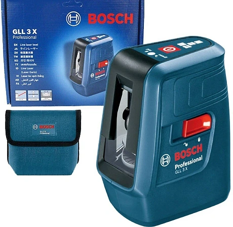 От более дешевых модификаций Bosch GLL 3 X Professional отличается расширенным сектором проецирования линий и наличием, помимо лазеров, обеспечивающих построение "креста", дополнительного вертикального излучателя с перпендикулярным расположением. Это дает возможность с помощью данного изделия производить облицовочные работы, включая укладку плитки не только на стены, но и на пол.