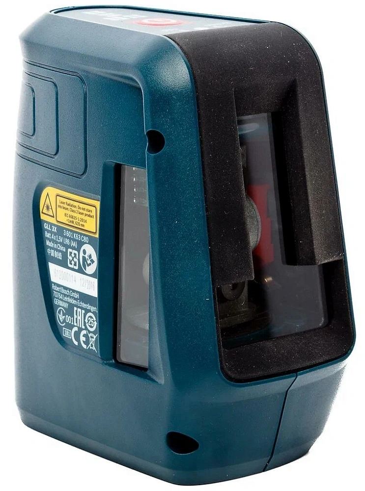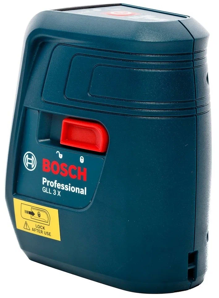 - Включение лазера независимо от разблокировки системы самовыравнивания, для чего используется, соответственно, мембранная кнопка и линейный переключатель, дает возможность использовать лазерный нивелир Bosch GLL 3 X Professional не только для вертикального и горизонтального выравнивания или разметки, но и в наклонном режиме – при деактивированном автонивелировании.
