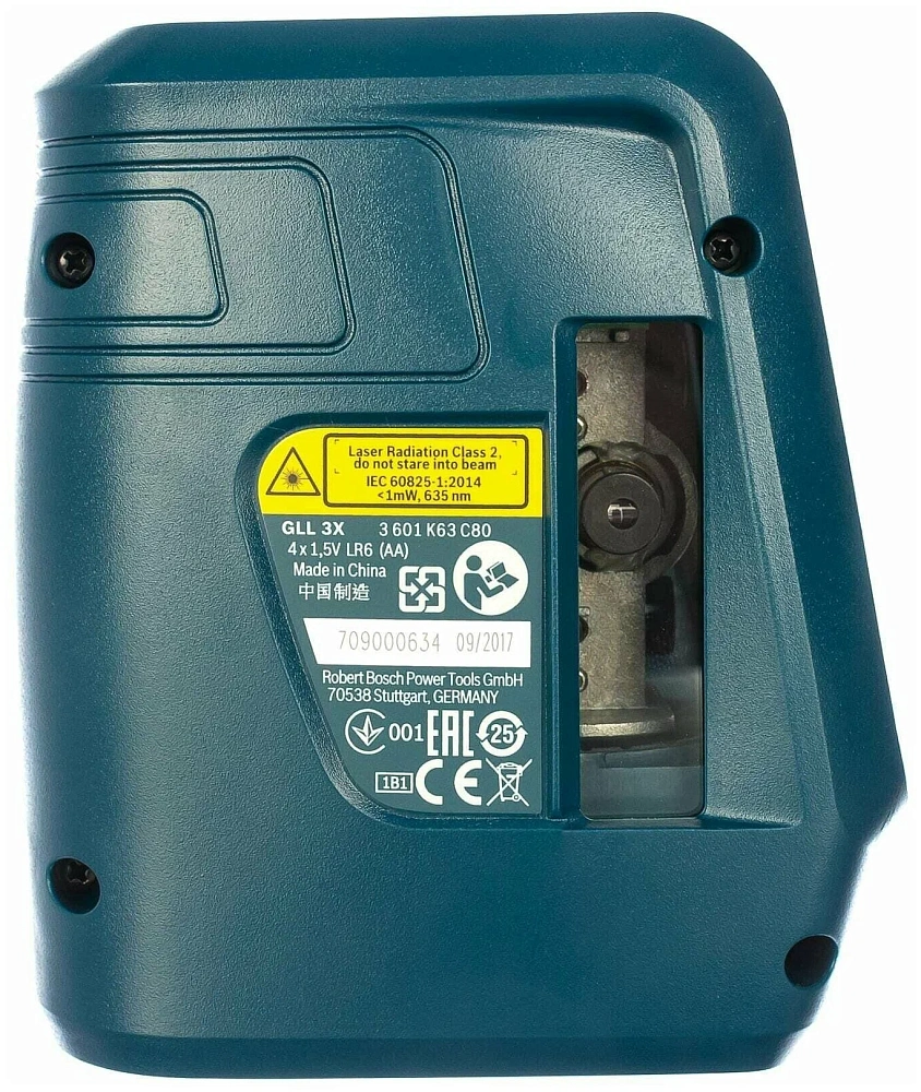 Отверстие в основании с четвертьдюймовой резьбой под винтовой фиксатор позволяет устанавливать лазерный уровень Bosch на любом подходящем штативе, распорной штанге либо любом другом креплении. Маятниковый механизм самовыравнивания действует в широком секторе, ± 4°, что ускоряет подготовку прибора к работе, так как не требуется его тщательное предварительное горизонтирование. При сильном наклоне основания лазерного уровня, превышающем сектор действия системы самовыравнивания, излучатели переходят в мигающий режим, с одновременным включением акустического сигнализатора, предупреждая пользователя о критическом отклонении и невозможности использования лазерного уровня в таком положении.