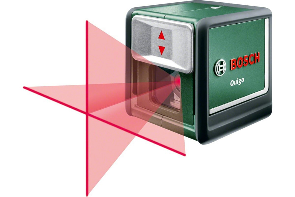 Прибор проецирует 2 линии - вертикальную и горизонтальную - которые образуют яркий, легко различимый крест. Плоскости автоматически выравниваются в диапазоне ± 4°, что компенсирует погрешности установки и неровности поверхности, на которой стоит лазерный нивелир BOSCH Quigo III.
