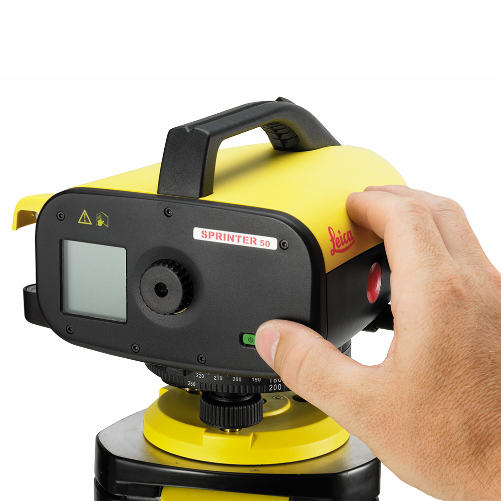 Надежная защита корпуса прибора по стандарту IP55 позволяет работать в самых неблагоприятных условиях, таких как запыленные строительные площадки или помещения с повышенной влажностью. Легкий вес прибора и его компактные размеры обеспечивают удобство эксплуатации. Питание цифрового нивелира Leica Sprinter 50 осуществляется от четырех стандартных батареек размера АА, благодаря чему никогда не возникнет сложностей с заменой элементов питания.