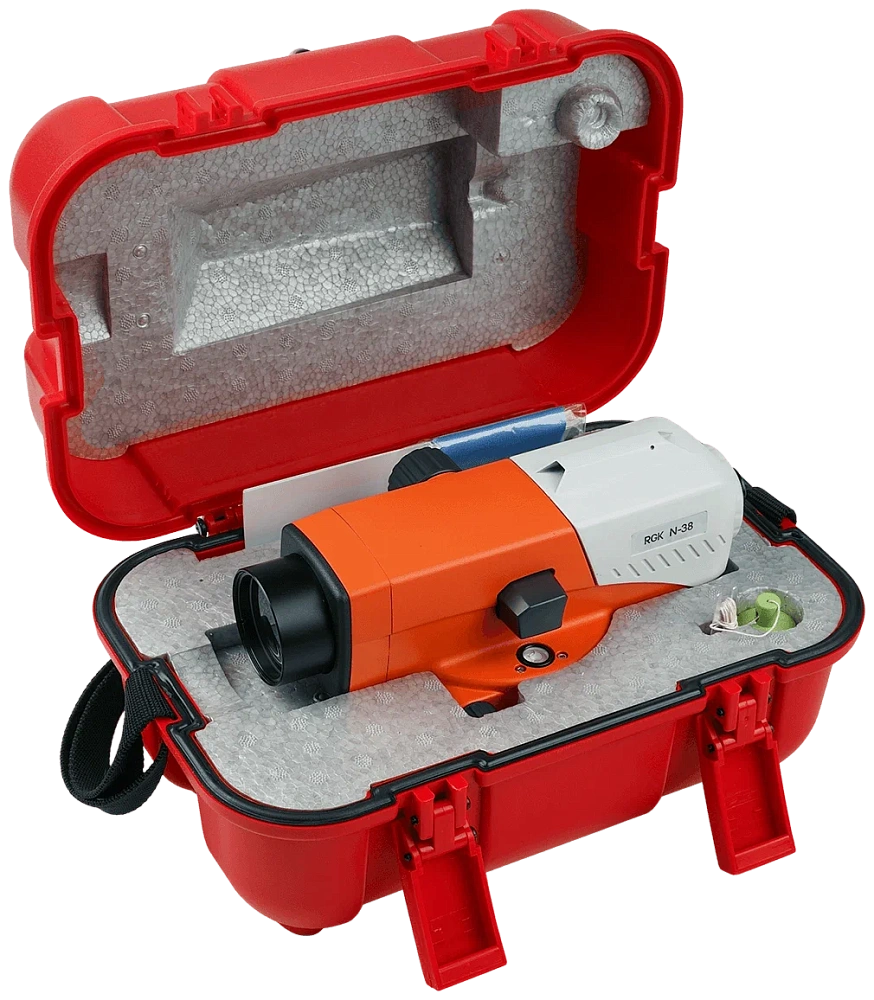 Возможность работы на больших расстояниях обеспечивается высокой точностью — ±0,7 мм на километр двойного хода, и значительном увеличении зрительной трубы, составляющем 38 крат. Вы можете выбрать измерительное плечо большой длины и контролировать равность плеч, используя нитяной дальномер зрительной трубы. Оптический нивелир RGK N-38 обладает малым весом — всего 2 кг, благодаря чему длительная работа с прибором не потребует больших усилий. Кроме того, эту особенность по достоинству оценят геодезисты, которым приходится выполнять работы в дальних экспедициях и много передвигаться пешком.