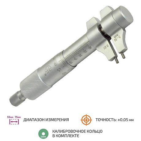 МЕГЕОН 80030 это высокоточный измерительный инструмент.Нутромер с боковыми губками предназначен для проведения замеров сквозных и глухих отверстий. Наш нутромер является воплощением точности и надёжности. С высокой точностью поможет измерить внутренние диаметры отверстий в пределах 5 ... 30 мм и дискретностью отсчёта – 0,01 мм. Все элементы конструкции изготовлены из качественной инструментальной стали. Барабан и трещотка имеют шероховатые поверхности с целью исключить проскальзывание пальцев при проведении замеров. Измерительные губки имеют закалённые поверхности, что в свою очередь является признаком качества инструмента. Стебель нутромера изготовлен из сплава сталей высочайшего качества. В комплекте с нутромером поставляется калибровочное кольцо. Предотвращение повреждений во время транспортировки и хранения обеспечивается ударопрочным футляром.