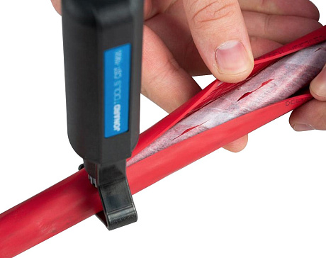 - Может прорезать различные материалы оболочки, такие как ПВХ, резина, полиэтилен и многие другие.