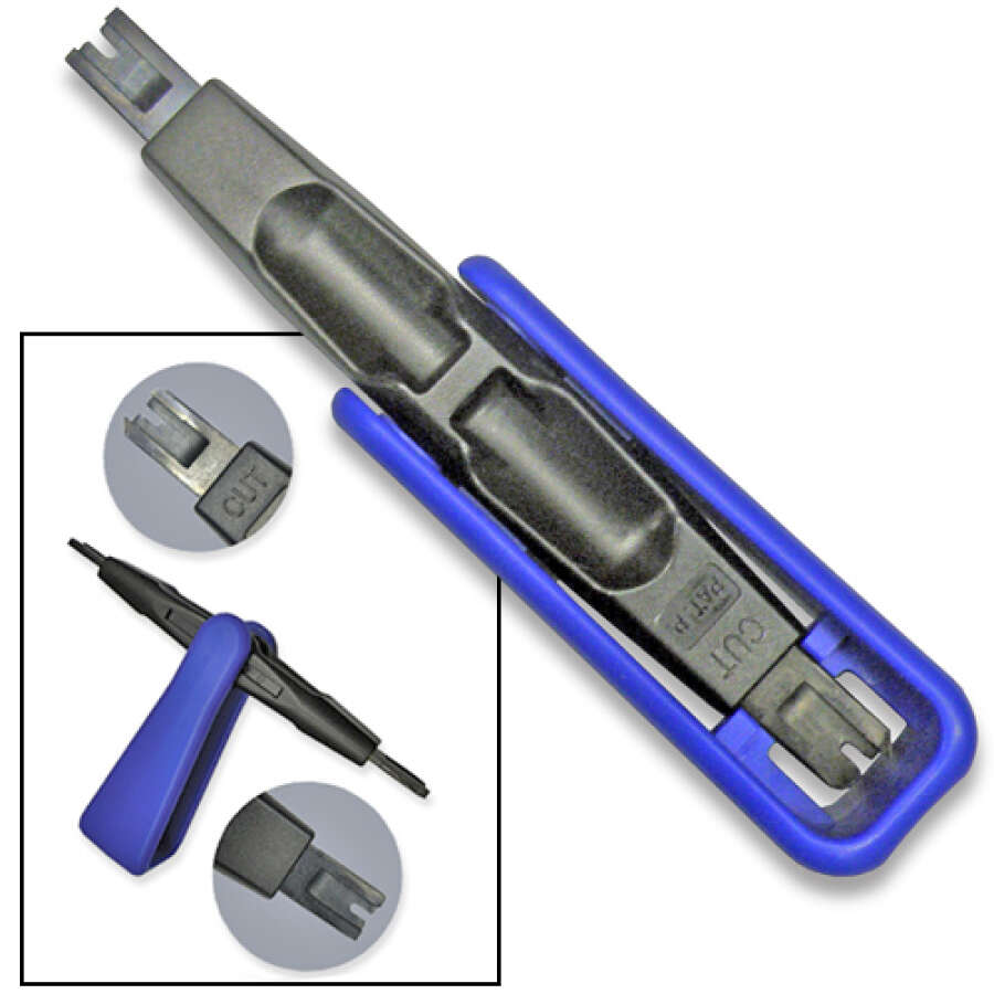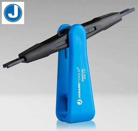 Jonard ENI-110 - безударный инструмент для расшивки кабеля на кросс. Предназначен для расшивки проводника на клеммную колодку 110 кросса. Инструмент не оснащен ударным механизмом, что дало возможность значительно снизить его стоимость. Расшивка имеет эргономичную рукоятку, и два разных лезвия для 110 кросса - одно с обрезкой остатка провода, второе без. Простой - быстрый - легкий.