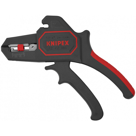 Автоматический инструмент Knipex KN-1262180 предназначен для удаления изоляции с одно-, многожильных и тонких проводов сечением 0,2 - 6,0 мм² со стандартной изоляцией.