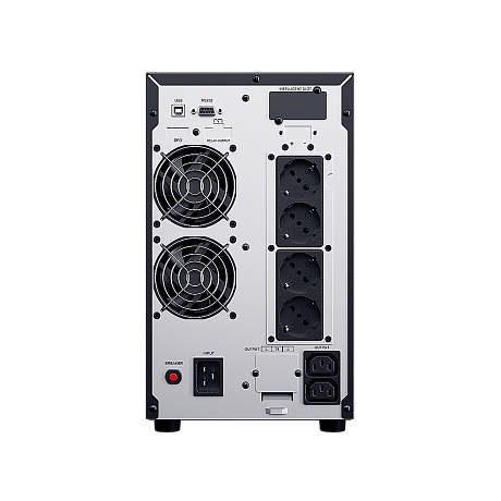 Это надежный источник бесперебойного питания с защитой от скачков и всплесков напряжения, универсальный в использовании и добавляющий устойчивости всей системе. Устройство отличается минимальным расходом электроэнергии и требует небольшое свободное пространство для установки, что обусловлено башенным исполнением. Благодаря ЖК-экрану есть возможность в удобном формате отслеживать характеристики оборудования.