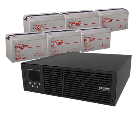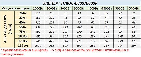 В моделях нет внутренних аккумуляторов!!!, ИБП работают только с внешними аккумуляторными батареями. Увеличенные показатели зарядного тока позволяют работать с батареями большой ёмкости (от 26Ач-150Ач). Для модели Эксперт Плюс-6000Р напряжение в группе составляет 192В, что диктует подключение 16 штук батарей к каждому ИБП в качестве номинального количества.