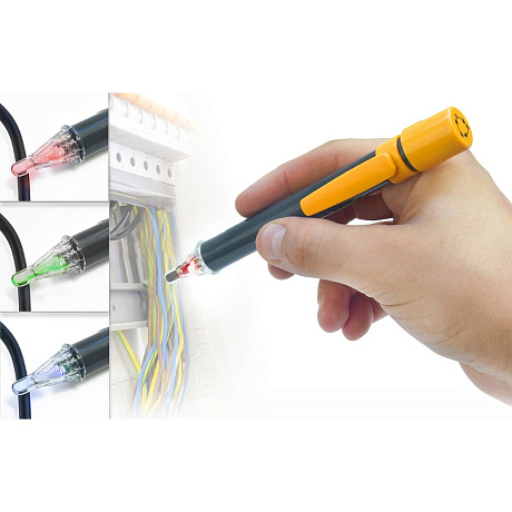 Тестер порядка следования фаз трёхфазного переменного тока МЕГЕОН 55003, представляет собой компактный тестер-индикатор фаз, выполненный из пластика высокого качества. Фазоуказательвыполнен по международному стандарту безопасности IEC-61010-1 CAT III 600V. Рабочий диапазон составляет от 90 до 600В с частотой от 48 до 62 Гц. Тестер последовательности фаз переменного трехфазного тока МЕГЕОН 55003 имеет звуковое оповещение и световую трехцветную индикацию, о наличии переменного напряжения и последовательности чередования фаз. Достаточно поднести тестер к проводнику под напряжением и он укажет сигнализацией о наличии тока в проводнике и фазу. Благодаря форме корпуса, как у шариковой ручки и наличию клипа, индикатор можно переносить в наружнем кармане. Данный тестер будет являться незаменимым помощником при монтаже и ремонте электрических сетей и оборудования.