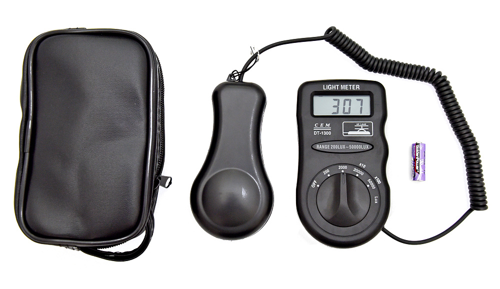 Для измерения уровня освещения переключите единицы измерения и установите диапазон измерения, после этого расположите фотодетектор в потоке света и на LCD дисплее появятся значения.