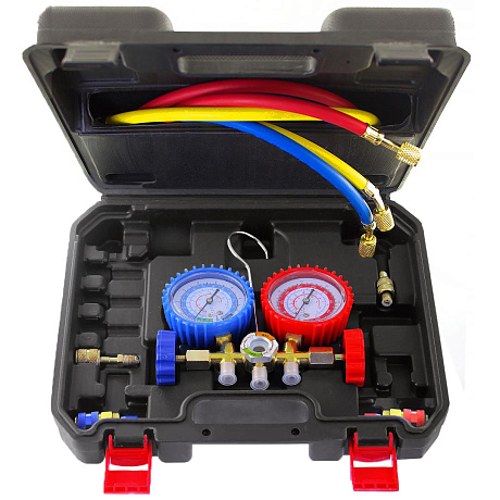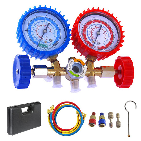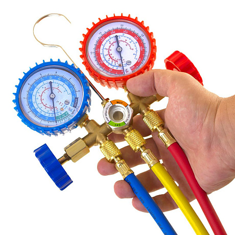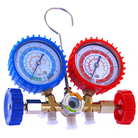 МЕГЕОН 51720 - это манометрическая станция (коллектор), имеющая два манометра, 2 вентиля, три штуцера и смотровое окно. Представляет собой измерительный прибор, предназначенный для полного цикла техобслуживания. Позволяет одновременно измерять давление в обоих контурах, проводить вакуумирование, заправку и дозаправку хладагентом. Для удобства на шкалах нанесены температуры кипения хладагентов R12, R22, R134a, R502. В комплекте имеется крючок для подвешивания, быстросъёмные и резьбовые муфты. В дополнение к ней идеально подходят вакуумные насосы нашего производства. Она найдёт широчайшее применение у специалистов занимающихся монтажом, ремонтом и обслуживанием оборудования, которое работает с вышеперечисленными газами. В качестве примеров можно привести бытовые, торговые и промышленные холодильники, климатические установки, автокондиционеры и т.д.