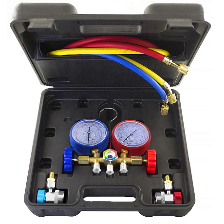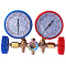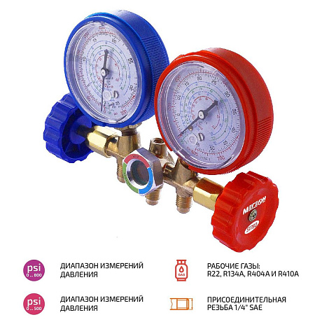 МЕГЕОН 51780 - это манометрическая станция (коллектор), имеющая два манометра, 2 вентиля, три штуцера и смотровое окно. Представляет собой измерительный прибор, предназначенный для полного цикла техобслуживания. Позволяет одновременно измерять давление в обоих контурах, проводить вакуумирование, заправку и дозаправку хладагентом. Для удобства на шкалах нанесены температуры кипения хладагентов R22, R134a, R404a и R410a. В комплекте имеется крючок для подвешивания и быстросъёмные муфты. В дополнение к ней идеально подходят вакуумные насосы нашего производства. Она найдёт широчайшее применение у специалистов занимающихся монтажом, ремонтом и обслуживанием оборудования, которое работает с вышеперечисленными газами. В качестве примеров можно привести бытовые, торговые и промышленные холодильники, климатические установки, автокондиционеры и т.д.