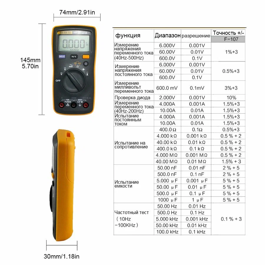 FLUKE 107, Цифровой мультиметр CAT III 600V