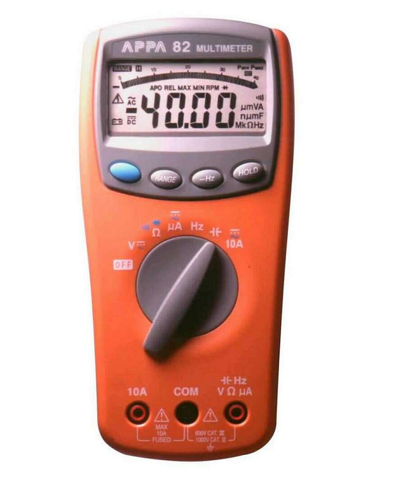 Профессиональный цифровой мультиметр APPA 82 позволяет проводить измерения постоянного/переменного тока и напряжения, сопротивления, частоты, емкости, проверять диоды, прозванивать проводники и многое другое.