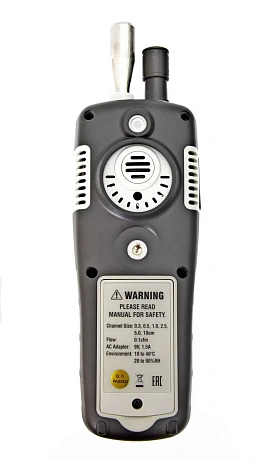 - Одновременное измерение и отображение концентрации частиц в 6 каналах (6 диапазонов размеров частиц) до 0.3мкм