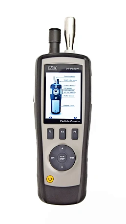 DT-9880M Счётчик пылевых частиц оснащен 2,8-дюймовым, цветным TFT ЖК-экраном и портом MicroSD для хранения фотографий (JPEG) и видеозаписей (3GP) с возможностью последующего просмотра на персональном компьютере. Прибор обеспечивает получение быстрых и точных показаний содержания взвешенных твердых частиц, измерение массовой концентрации РМ2.5/РМ10, измеряет температуру воздуха и относительную влажность. Прибор представляет собой экологическую мини лабораторию, которая выполняет весь комплекс указанных измерений.