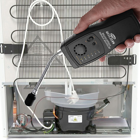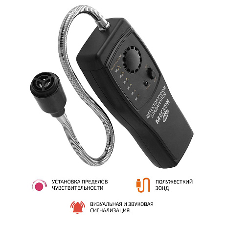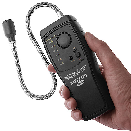 МЕГЕОН 08003 – это портативный детектор утечки хладагентов, обладающий высокой чувствительностью с возможностью точной настройки и наличием визуальной и звуковой сигнализации. Предусмотрено отключение датчика, который расположен на выносном полужёстком зонде длиной 350 мм для удобства поиска в труднодоступных местах. 6 уровней индикации соответствуют количеству попадающего газа за единицу времени, что облегчает определение размеров повреждения. Благодаря специальной форме он удобно лежит в руке, а маленький вес позволяет пользоваться им продолжительное время. Он найдёт широчайшее применение при выполнении монтажа, ремонта и обслуживания торговых и бытовых холодильников, климатических установок и автомобильных кондиционеров. Прибор имеет гибкую систему питания, от батарей или аккумуляторов типа АА.