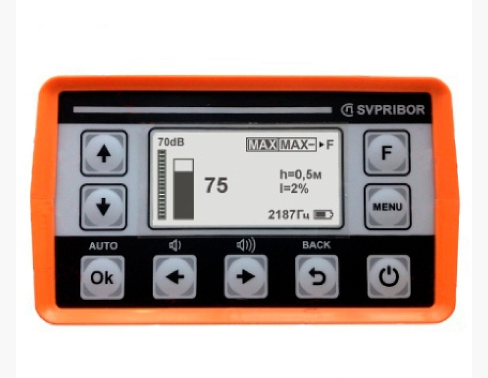 - Поиск и обнаружение трассы осуществляется по изображению на дисплее и звуковым способом (наушники и встроенный излучатель)