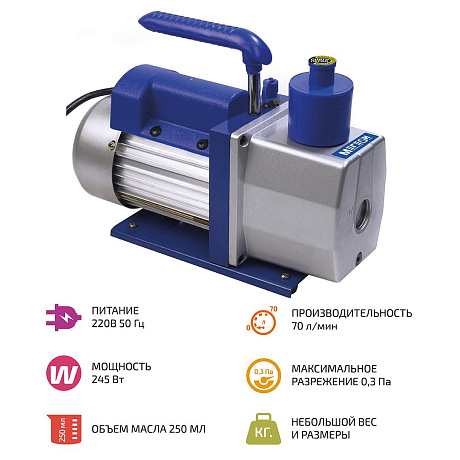 МЕГЕОН 98041 – это техническое средство представляющее собой электрический вакуумный двухступенчатый масляный насос, сочетающий в себе небольшие размеры, вес, высокую производительность и беспрецедентную надёжность. Удобная ручка для переноски, низкий уровень шума и невысокое энергопотребление делают его весьма привлекательным приобретением. Исключительные эксплуатационные характеристики достигаются благодаря новейшим разработкам, высококачественным материалам и изготовлению деталей на прецизионных станках. Он найдёт широкое применение при монтаже, наладке и ремонте бытового и торгового холодильного оборудования, домашних и автомобильных кондиционеров, в исследовательской деятельности и промышленном использовании, где необходимо откачать воздух до абсолютного значения 0,3 паскаля.