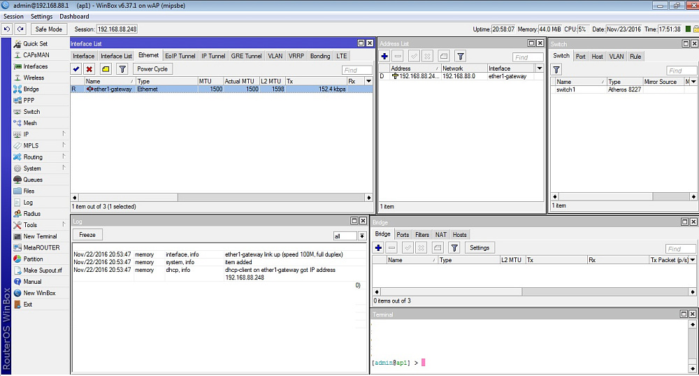 - Поддержка туннельных протоколов PPTP/PPoE/IPsec/SSTP/L2TP/IP2IP/EoIP/OVPN/GRE (управление отдаленными филиалами/рабочими столами из центрального офиса с организацией шифрования трафика)
