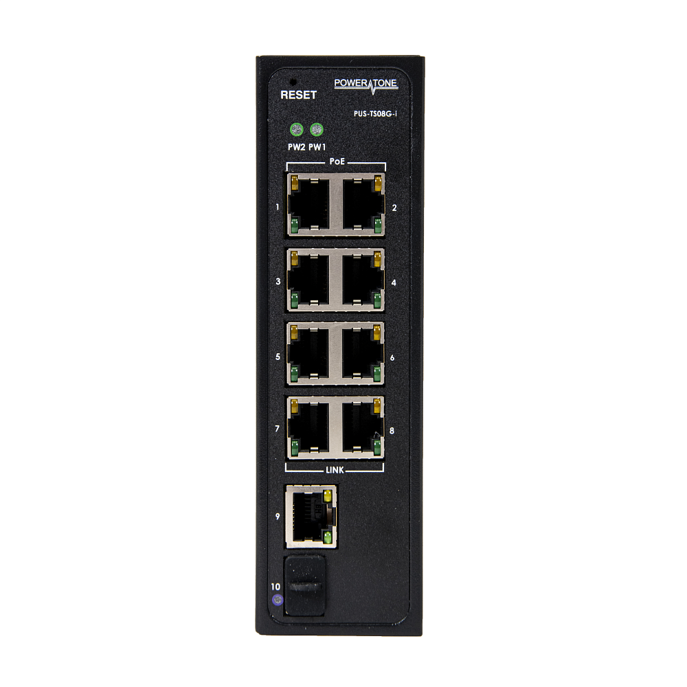 Неуправляемый промышленный 8 портовый PoE коммутатор POWERTONE PUS-TS08G-i