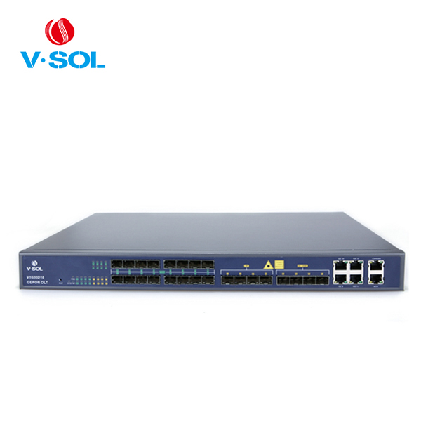Оптический линейный терминал V-SOL V1600D16 EPON OLT 16 SFP это надежное, высокопроизводительное решение для развертывания PON сетей на базе технологии GePON. V-SOL V1600D16 позволяет предложить пользователям услуги доступа в интернет, IPTV высокой четкости, IP-телефонии. Оптический линейный терминал V-SOL V1600D16 EPON OLT имеет 8 портов GePON на каждый из которых может быть установлено до 64 абонентских устройства, с симметричной скоростью передачи данных до 1,25 Гбит/с, полностью соответствующих стандарту IEEE802.3ah. В качестве восходящих каналов могут быть использованы 4 порта RJ45 и 8 интерфейсов SFP, 4 из которых поддерживают скорость до 10Гбит/с (SFP+).