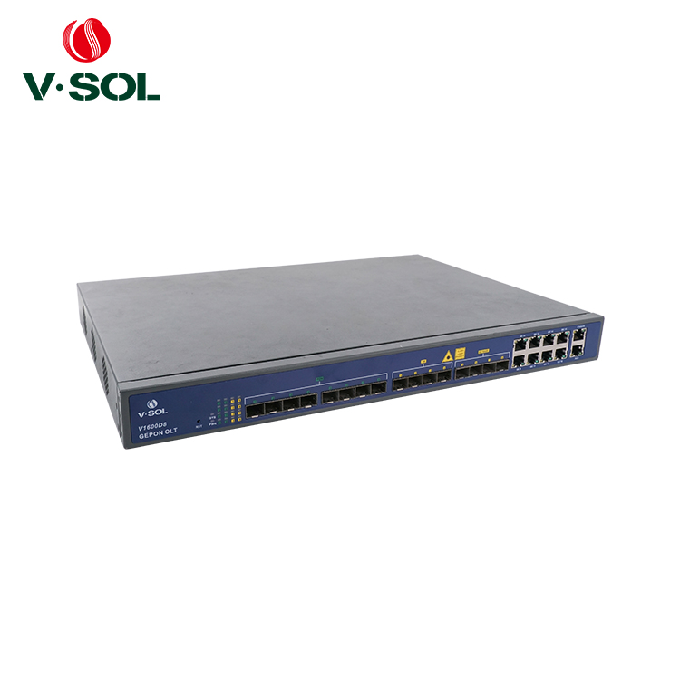 Оптический линейный терминал V-SOL V1600D8 EPON OLT 8 SFP это надежное, высокопроизводительное решение для развертывания PON сетей на базе технологии GePON. V-SOL V1600D8 позволяет предложить пользователям услуги доступа в интернет, IPTV высокой четкости, IP-телефонии. Оптический линейный терминал V-SOL V1600D8 EPON OLT имеет 8 портов GePON на каждый из которых может быть установлено до 64 абонентских устройства, с симметричной скоростью передачи данных до 1,25 Гбит/с, полностью соответствующих стандарту IEEE802.3ah. В качестве восходящих каналов могут быть использованы 8 портов RJ45 и 8 интерфейсов SFP, 4 из которых поддерживают скорость до 10Гбит/с.