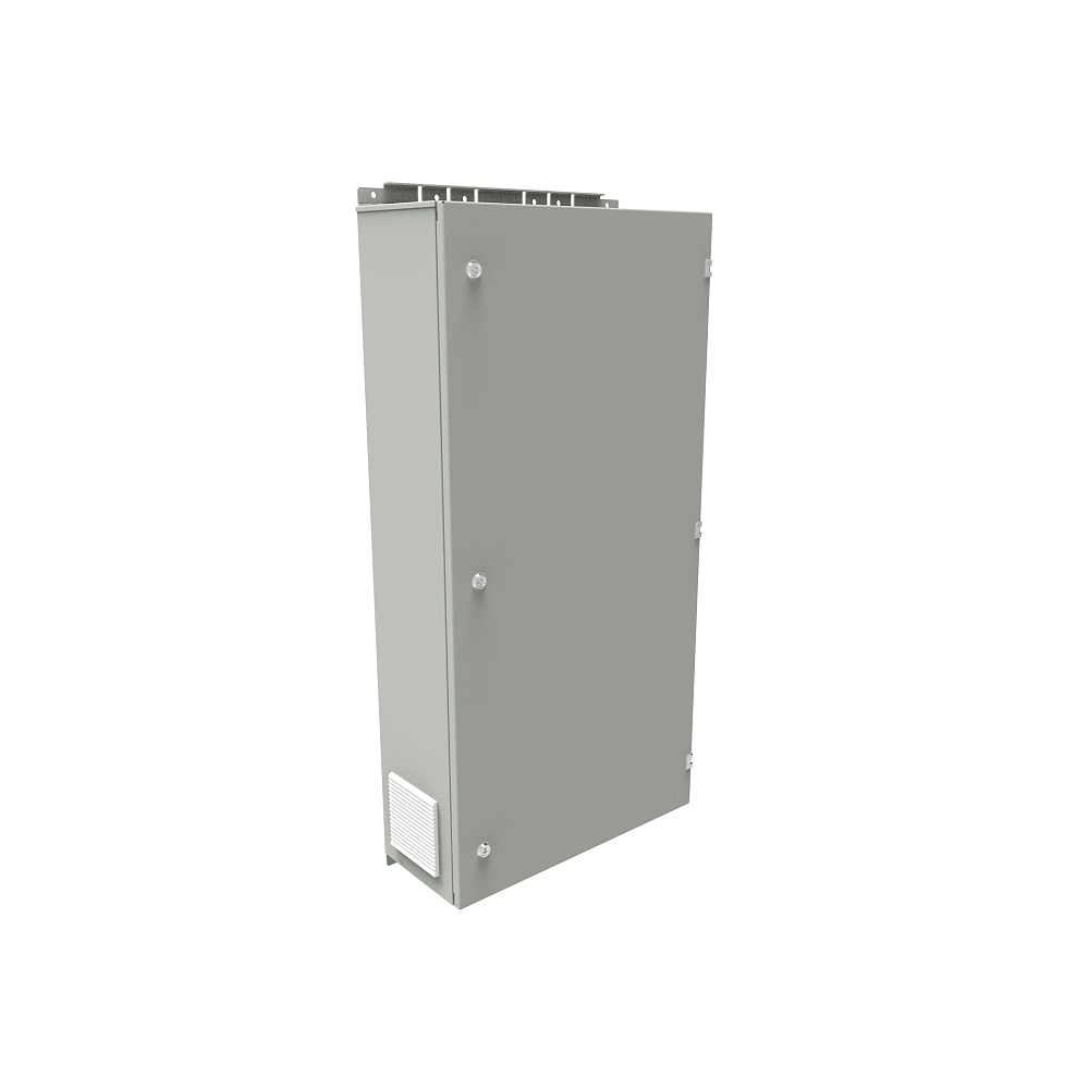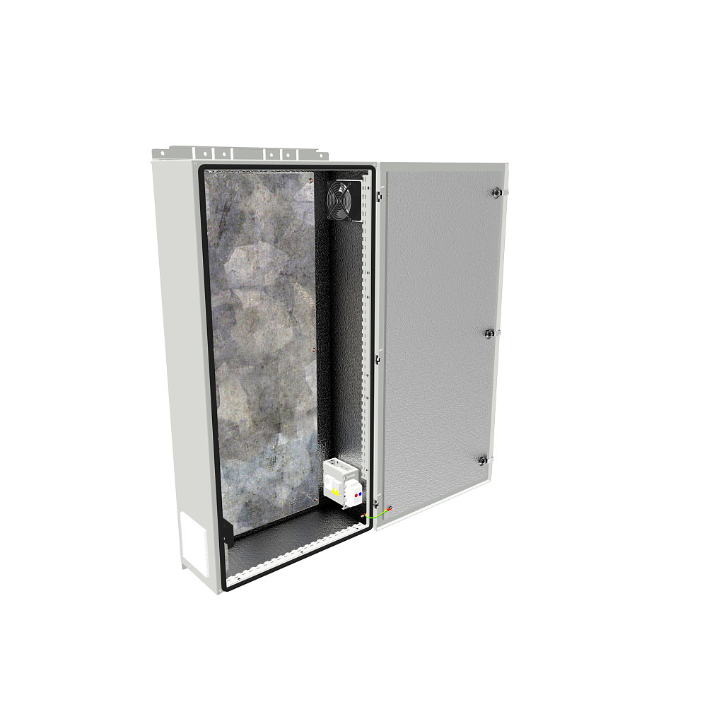 В шкафу предустановлен вентиляторный модуль, с возможностью установки на "вдув" или "выдув". Защитная решетка позволяет предотвратить не только механические воздействия, но и попадание влаги внутрь шкафа. Предустановленные термостаты и нагревательный элемент позволит сохранить температурный режим работы оборудования в зимний период.