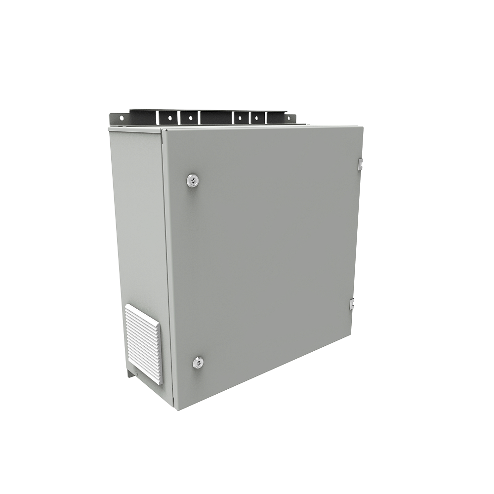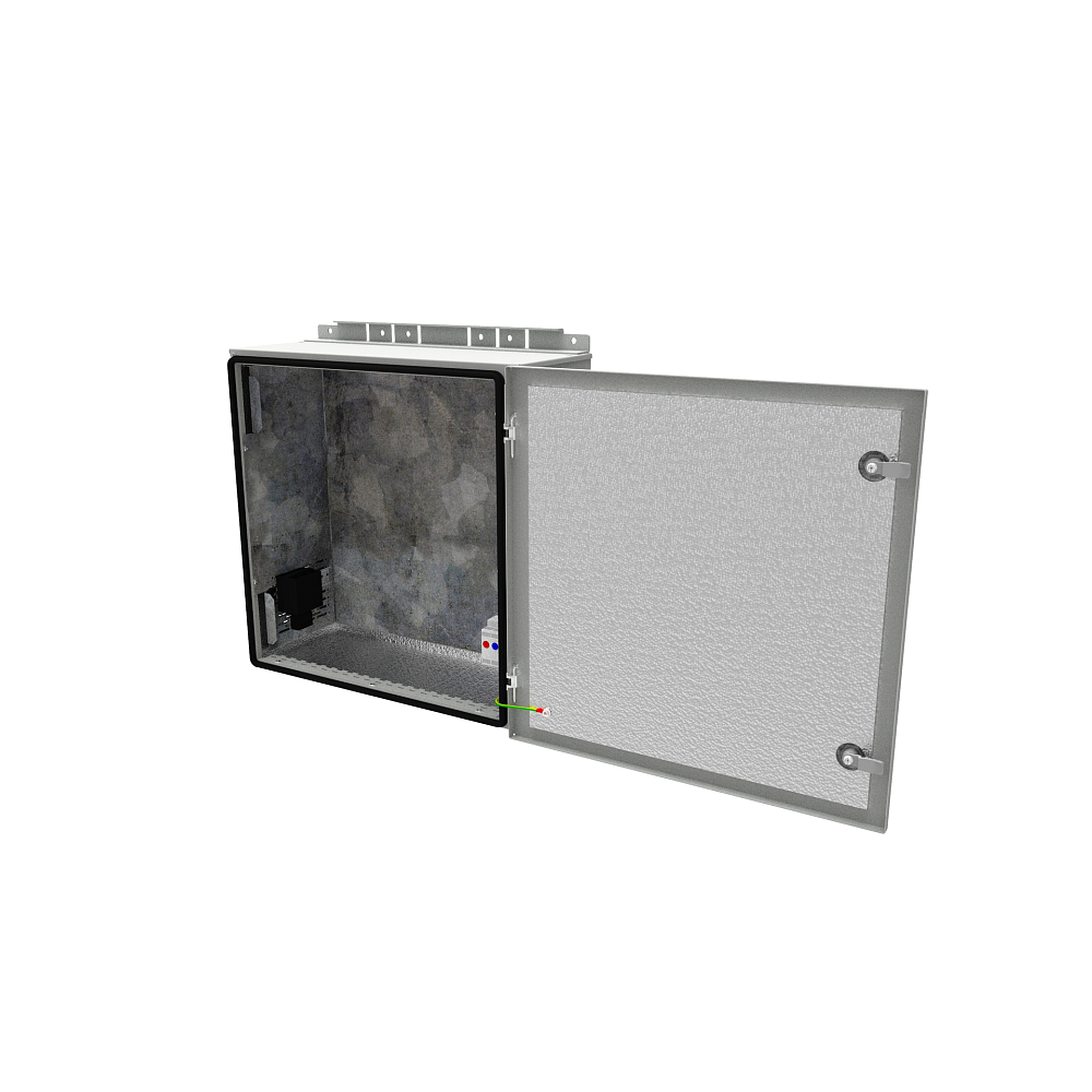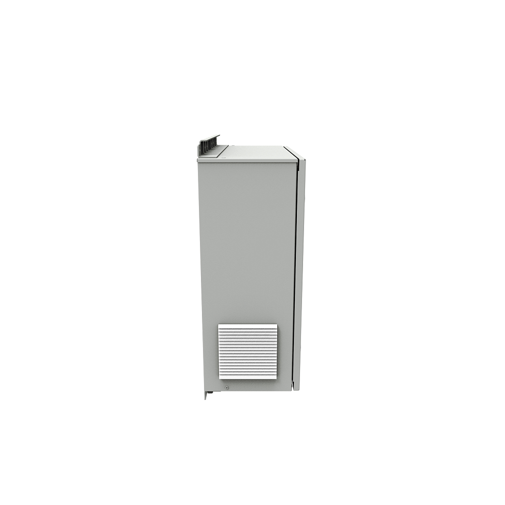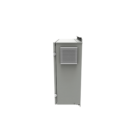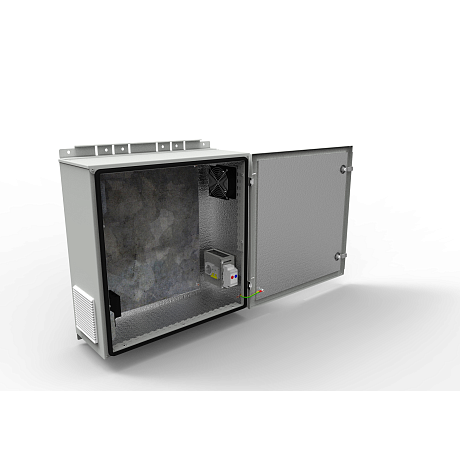 В шкафу предустановлен вентиляторный модуль, с возможностью установки на "вдув" или "выдув". Защитная решетка позволяет предотвратить не только механические воздействия, но и попадание влаги внутрь шкафа. Предустановленные термостаты и нагревательный элемент позволит сохранить температурный режим работы оборудования в зимний период.