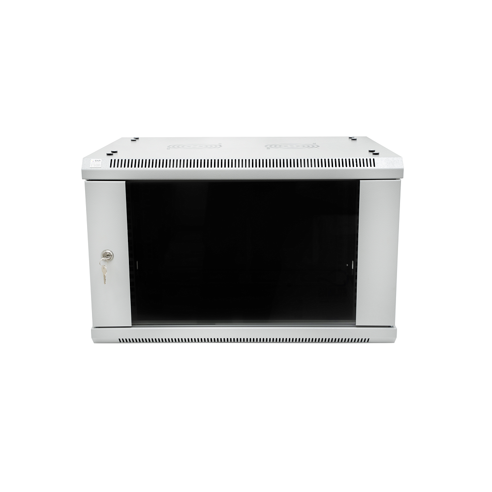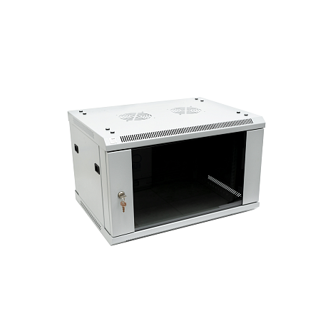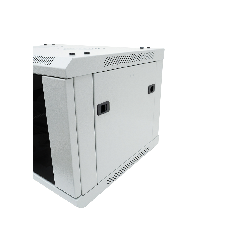 Дверь шкафа стеклянная, стекло 5 мм и поставляется с замком. Установка двери возможна как с правой, так и с левой стороны. Замок защищает от нежелательного доступа третьих лиц в шкаф. Боковые панели шкафов - легкосъемные для упрощения доступа к установленному оборудованию, снабжены защелками.