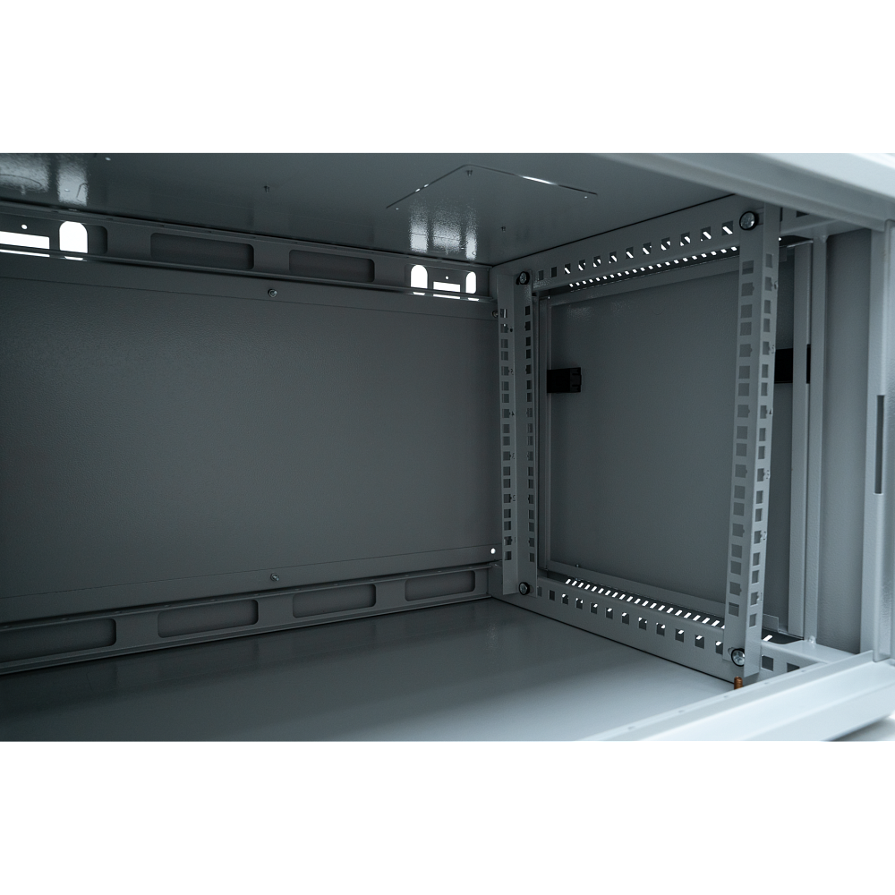 В комплекте идут монтажные вертикальные направляющие для крепления стандартного 19 дюймового оборудования. Направляющие пронумерованы в соответствии с количеством юнитов, для упрощения процесса монтажа. Направляющие регулируются по глубине. Доступ к оборудованию, устанавливаемому в шкафу, может осуществляться с трёх сторон. Шкаф поставляется в разобранном виде.