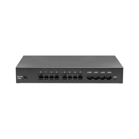 8 FXS, 1 WAN 10/100Mbit, 3 LAN 10/100Mbit |