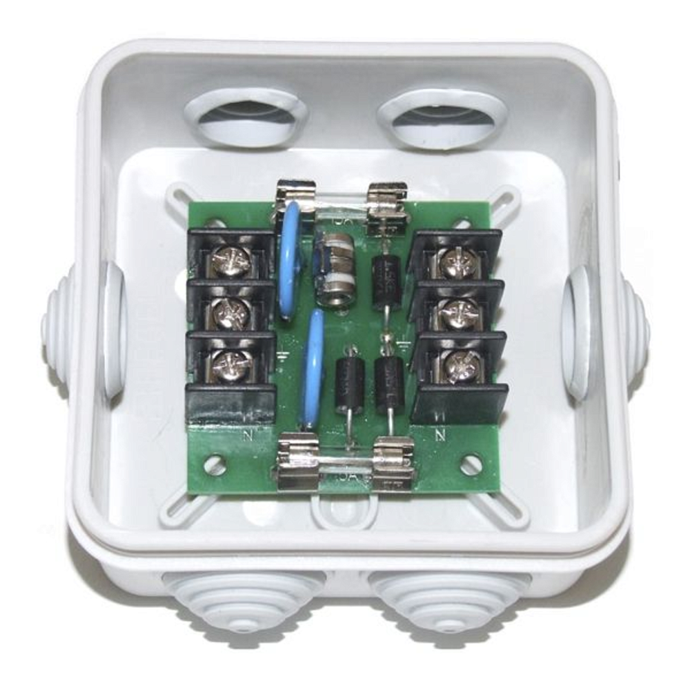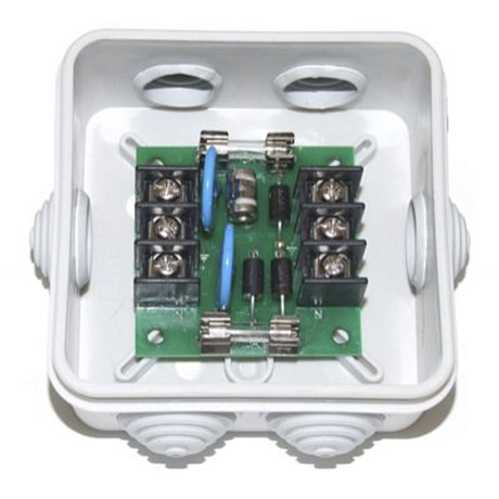 Не секрет, что электронное оборудование наружной, уличной установки подвержено различным негативным воздействиям. На исправную работу аппаратуры влияют такие факторы как: погодные условия, напряжение питания и т.п. Устройство NAG-E1.0 разработано для защиты подключенного к нему оборудования от помех в электросети. В устройстве предусмотрена сверхбыстрая трёхуровневая защита от аварийного повышения напряжения, двухуровневая защита от грозовых разрядов до 5000 Ампер и защита от коротких замыканий со стороны подключаемого оборудования. Устройство установлено в защищённом корпусе(стандарт IP55). Имеет удобные крепёжные контакты с обозначением выводов. В комплекте имеется набор для крепления коробки на различных поверхностях, а также запасные предохранители.