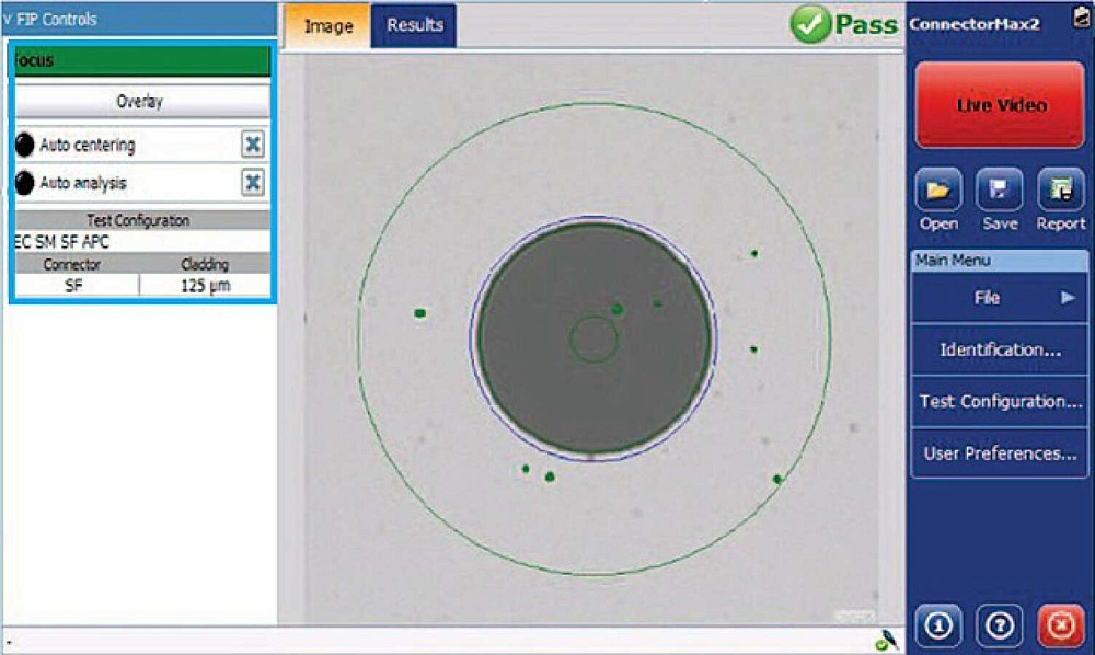 Микроскопы FIP-420B и FIP-430B, используя программное обеспечение ConnectoMax2, могут определять качество поверхности коннектора "годен/не годен". Программа позволяет автоматически оценивать качество поверхности, сохранять изображения тестируемых объектов и формировать подробные отчеты. На все это потребуется всего несколько секунд.