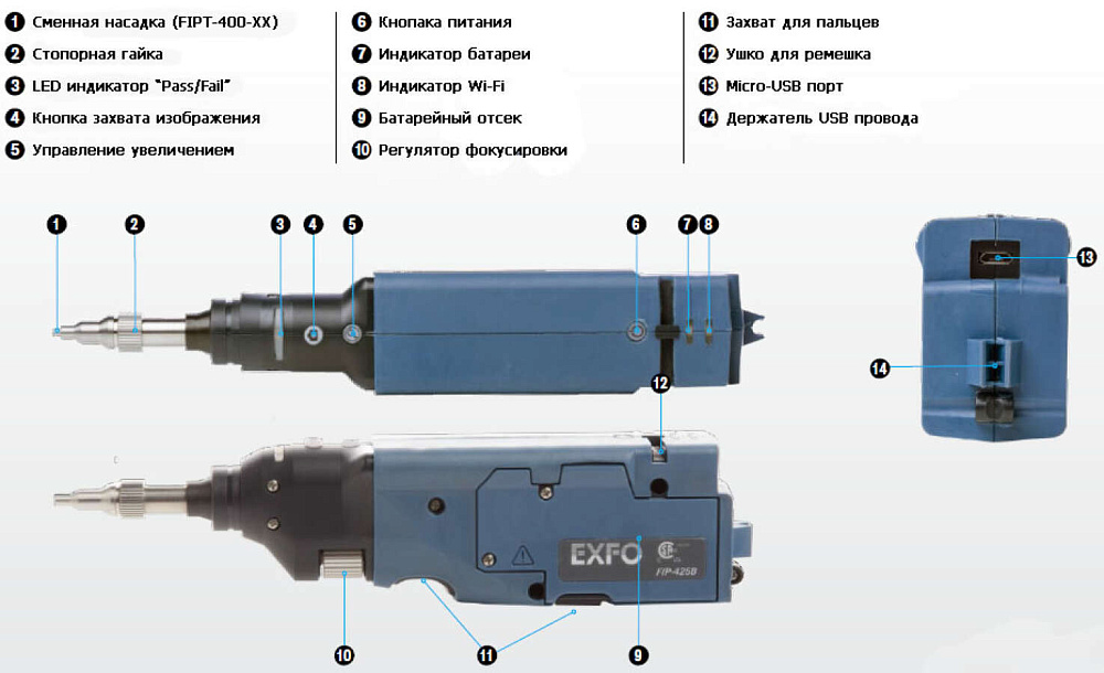 EXFO FIP-435B - беспроводной микроскоп для контроля чистоты оптических коннекторов